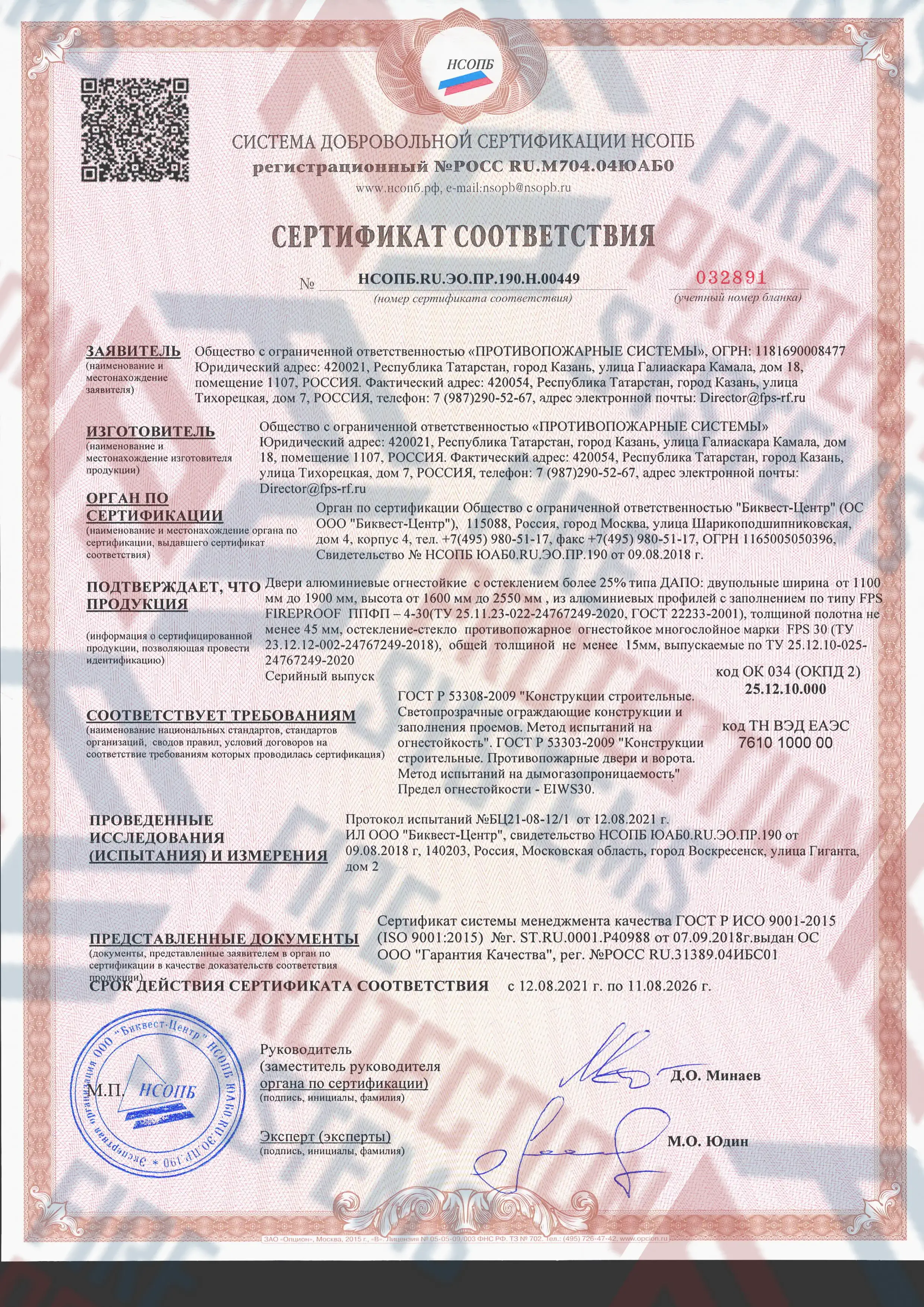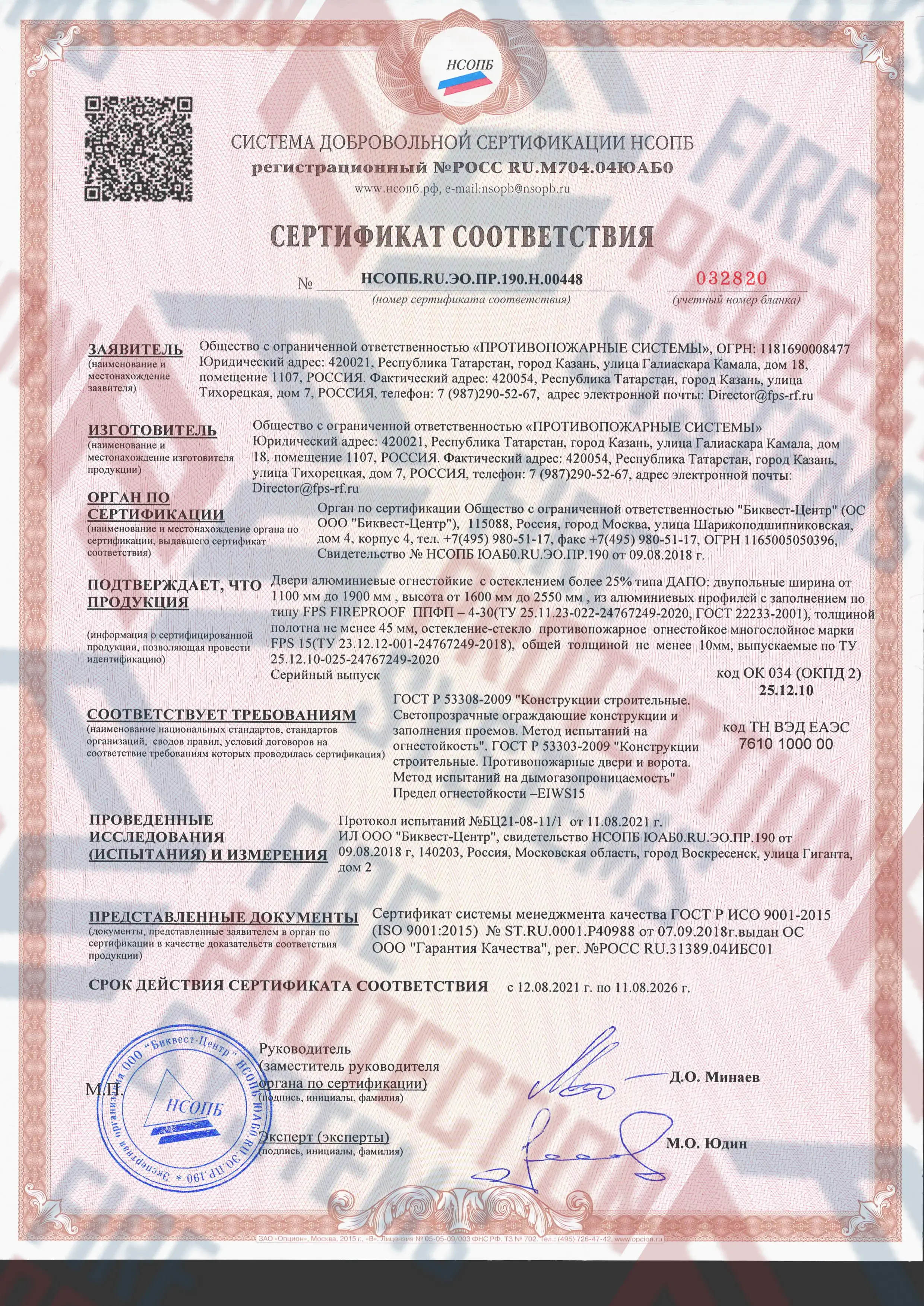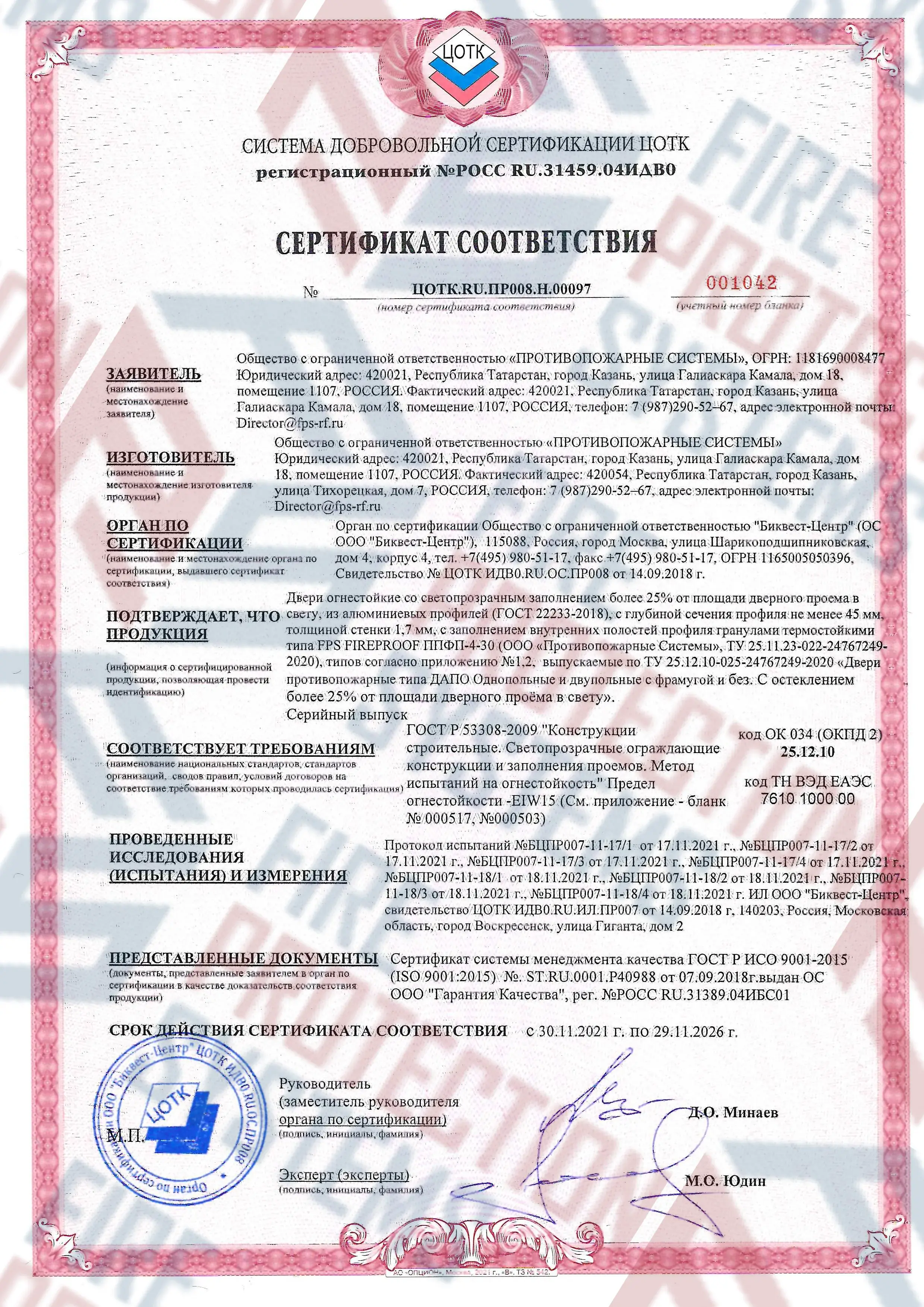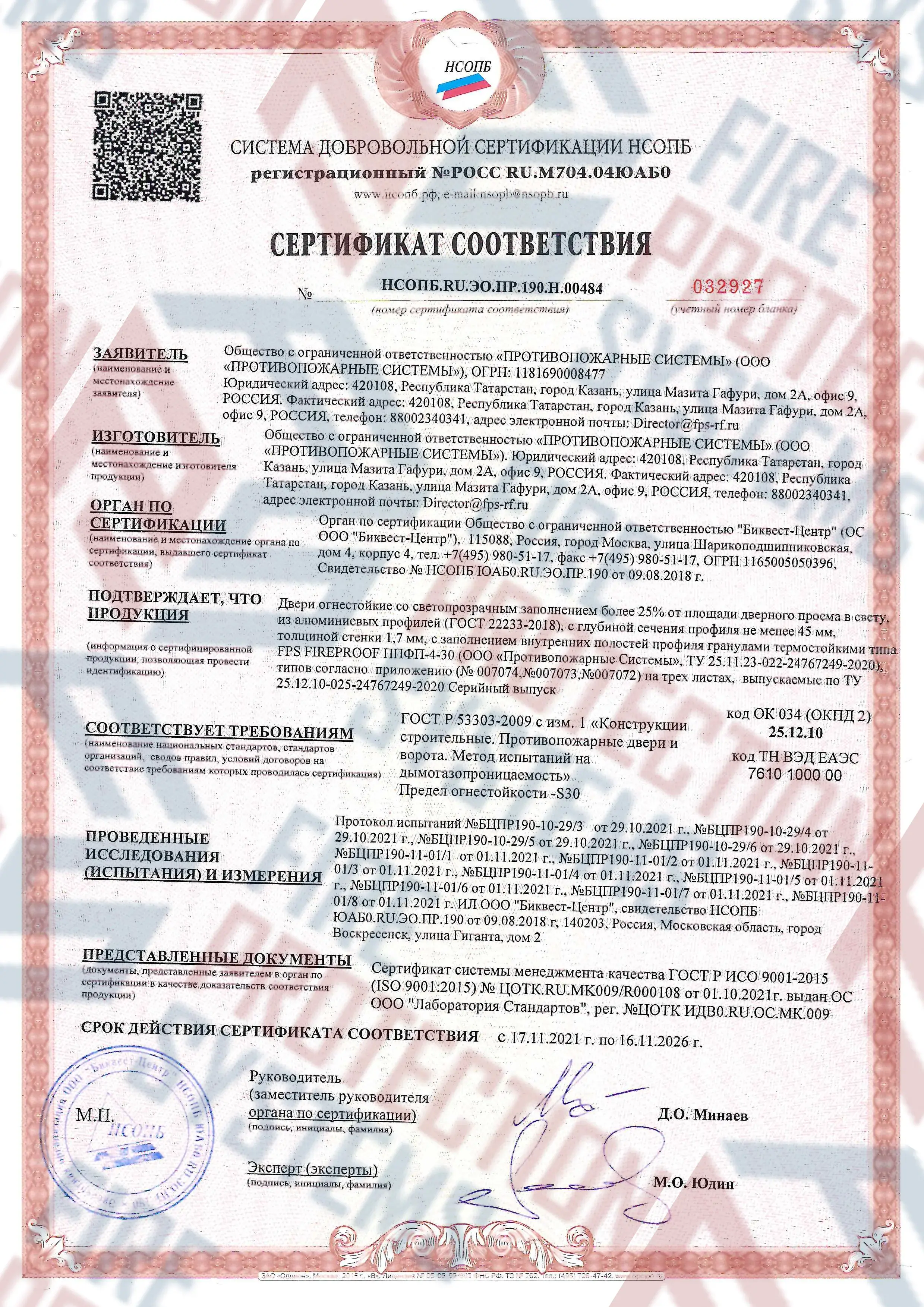 Противопожарные алюминиевые двери в Арзамасе от завода-производителя «Fire Protection Systems». Мы предлагаем глухие алюминиевые и светопрозрачные противопожарные двери любых размеров. В нашем каталоге представлены противопожарные двери от EIW15 до EIW 60 с тёплым и холодным профилем. Наши товары сертифицированы и полностью соответствуют ГОСТ. Также мы предлагаем доставку по всей России и установку противопожарных дверей из алюминиевого профиля на объекте. Закажите консультацию специалиста «Fire Protection Systems», чтобы узнать, как купить противопожарные двери остекленные алюминиевые по лучшей цене.