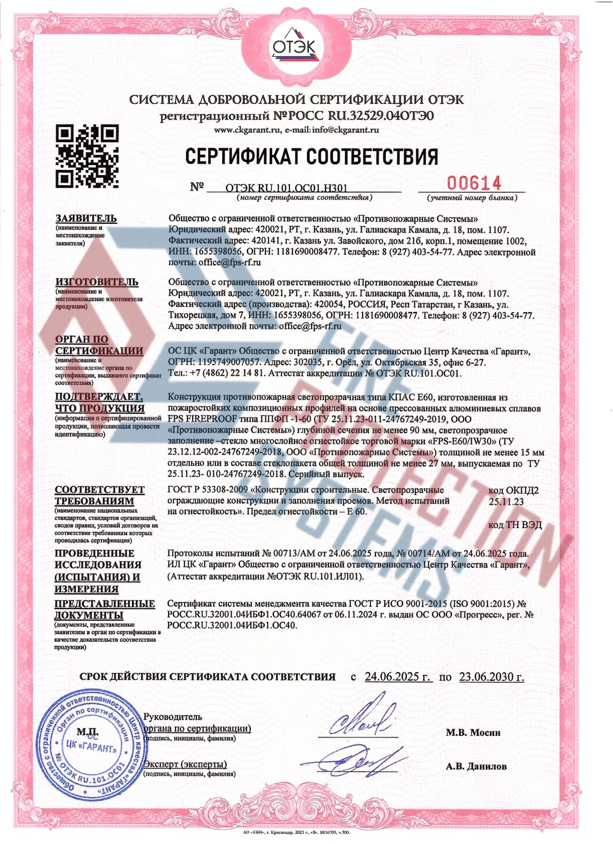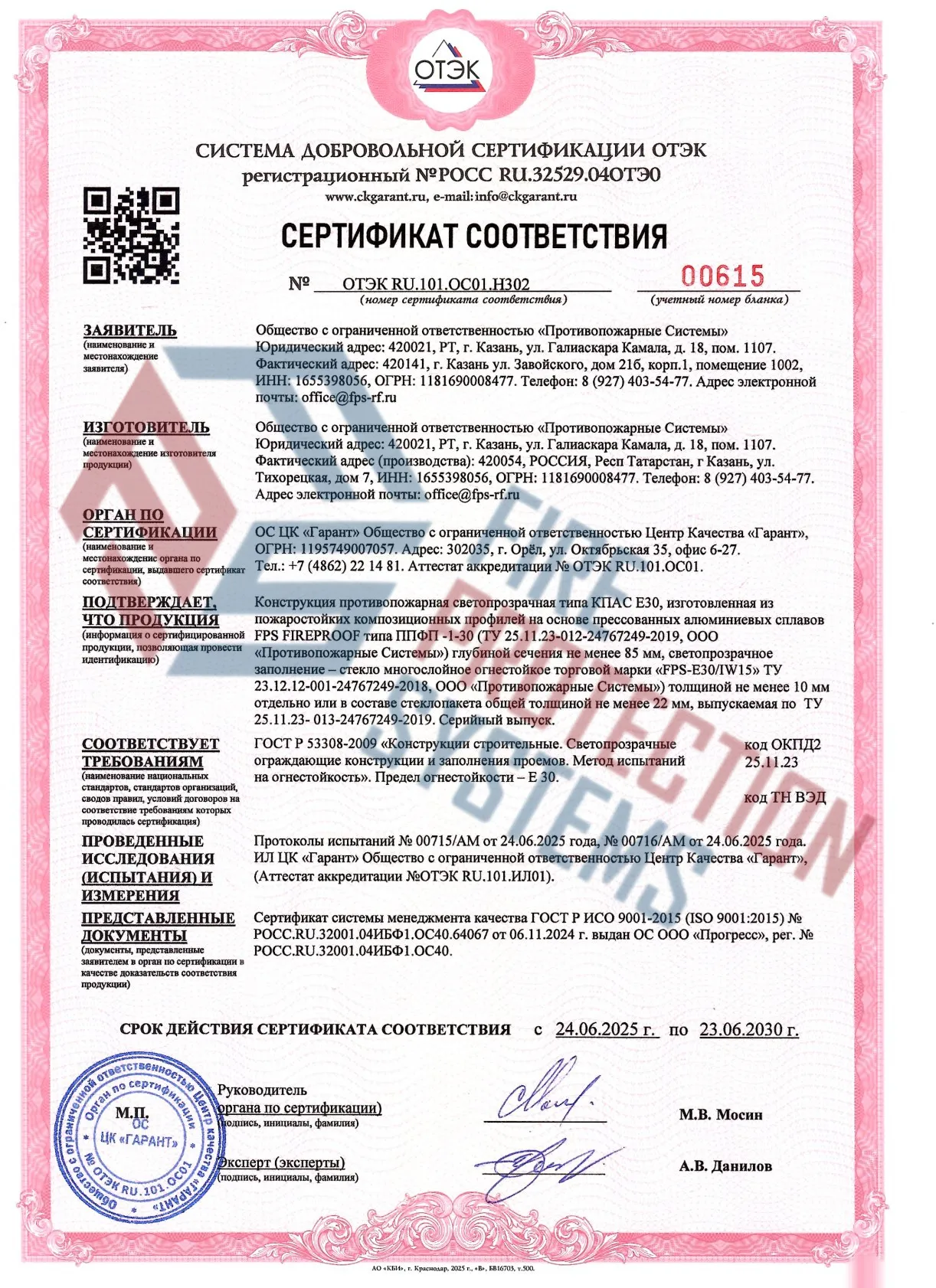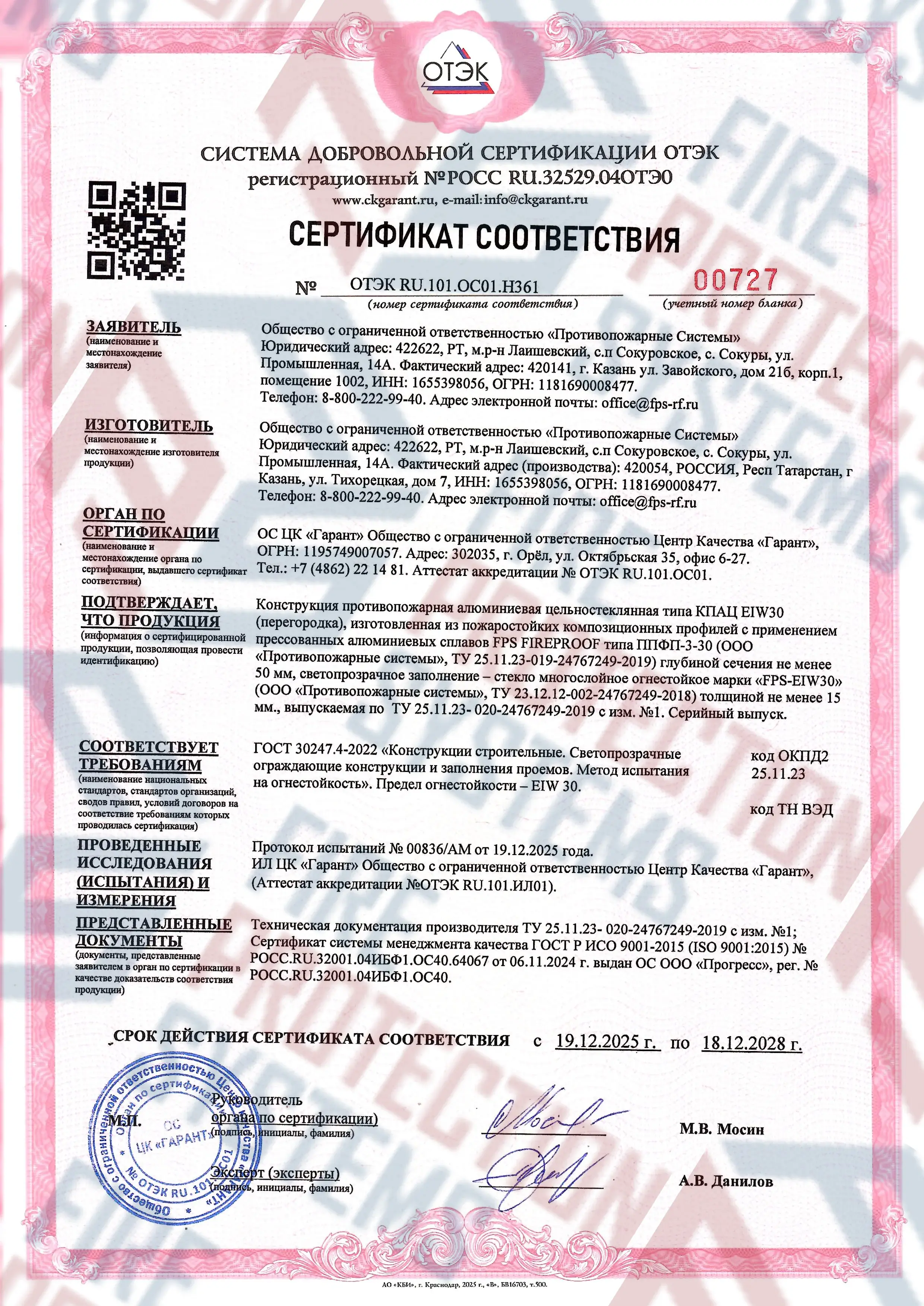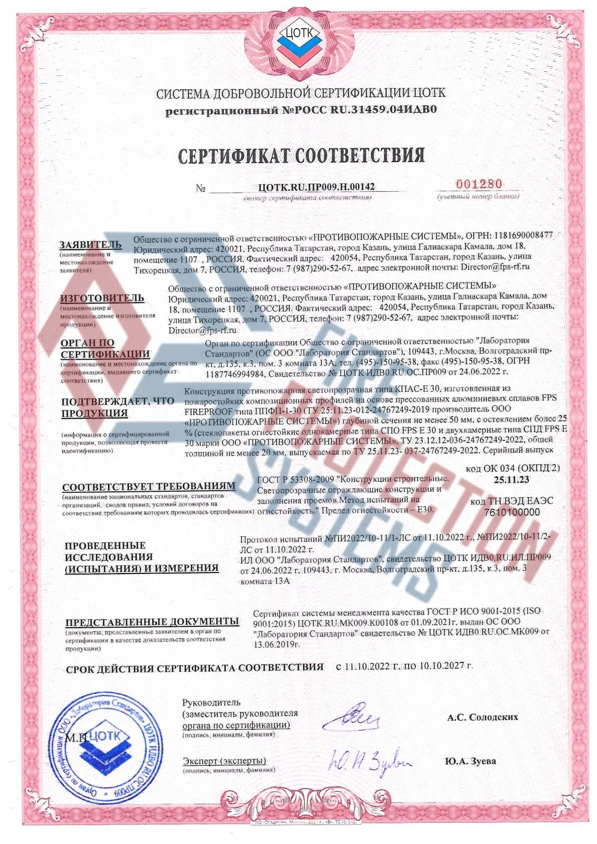 Соответствие нормам – сертифицированы по ГОСТ Р 53308-2009 и другим стандартам пожарной безопасности.